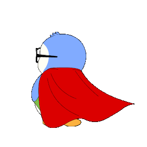 Animated sticker of Pengu Pudgy, a smart penguin character wearing glasses and a red cape, holding a book.
