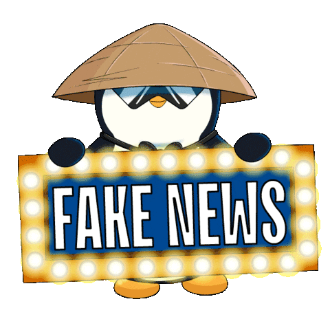A cool penguin in a conical hat and sunglasses holds a blank marquee sign, perfect for highlighting fake news or false information.