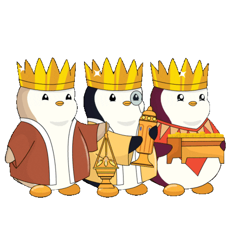 three penguins are dressed as the three wise men