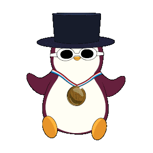 A pudgy penguin wearing a top hat and goggles, displaying 'GG' and glowing with victory lights.