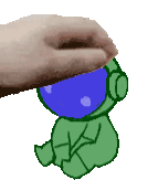 Animated sticker of Astro Pepe, the green frog character, being gently petted. Features a blue eye and astronaut suit.