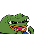 Pepe the Frog meme with an excited, wide-mouthed grin and clenched fist, embodying a Mukcak expression.