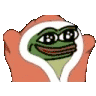 An animated sticker of Pepeblankies Pepenet, a frog in a cozy red hooded blanket with a wide smile.