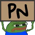 An animated pixel art sticker featuring Pepenet and Pepecoin, a Peepo character, holding two vibrant sabers and dancing energetically.