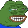 Pepe the Frog meme sticker featuring a wide, exaggerated smile and teary eyes, associated with Pepeserious and Pepenet.