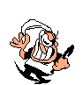Peppino Spaghetti, the frantic chef from Pizza Tower, animated and holding a knife. A pixel art sticker of the iconic character.