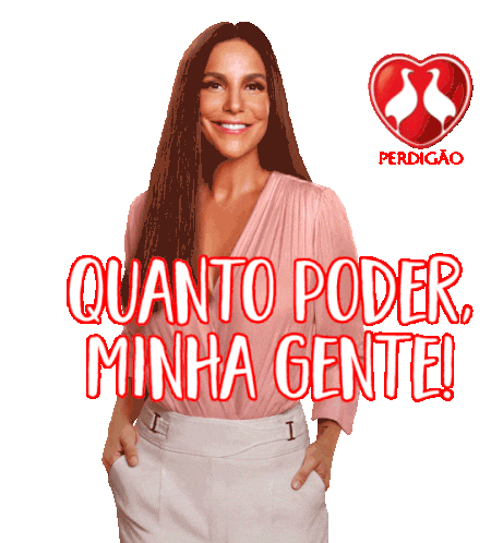 Brazilian singer Ivete Sangalo smiles, exclaiming 'How much power, my people!' for Perdigao, showcasing her vibrant energy.