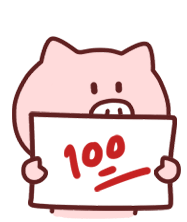 A cute pink cartoon pig proudly holds up a white sign displaying the number '100' in red, signifying perfection.