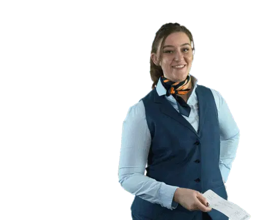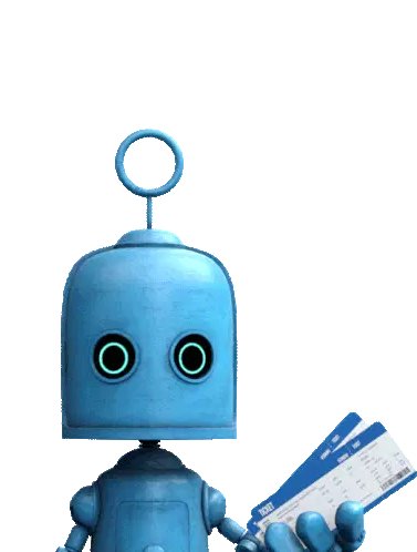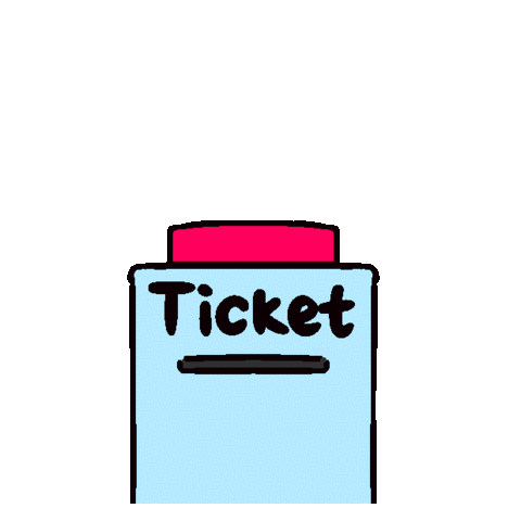 A sad pink character transforms into a happy orange character on a ticket machine, offering a permission ticket.
