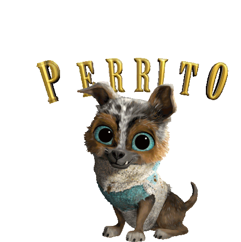 Perrito, el adorable perro de Puss in Boots: The Last Wish, sonríe dulcemente en este sticker animado.