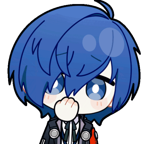 Chibi Makoto Yuki from Persona 3 Reload looking shy or embarrassed, covering his mouth with his hand.