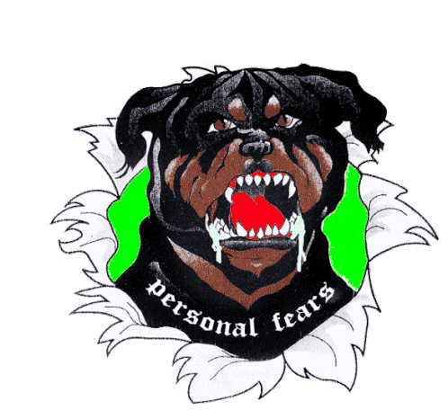 A drawing of a distressed dog with its mouth open, featuring the text 'Personal Fears'.