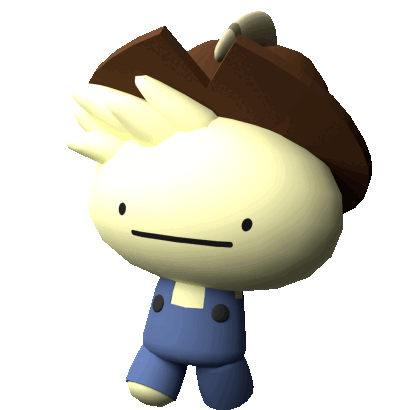 a cartoon character with a brown hat and blue pants is laying down