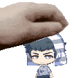 A charming pixel art sticker featuring a hand gently patting the head of cute chibi Tasuku Takato.