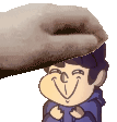 Nathaniel Holden, also known as Nate, smiles happily as a cat's paw gently pets his head in this charming animated sticker.