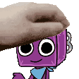 Boxten, the purple cartoon character from Dandys World, happily receives a gentle pet on the head.