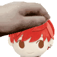 Mahiro Yukki's adorable pet pet sticker, featuring a red-haired stuffed animal propped up by a hand.