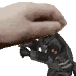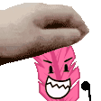 A gentle hand softly pets a delicate pink feather, creating a soothing and tender moment.