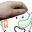 A hand gently places a hat on a cartoon character, which already has a flower on its head, performing a petpet motion.