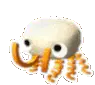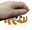 A pixelated hand gently pets a small, grey, crab-like creature known as a Bunger, squeezing it playfully.