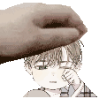 A pixel art sticker from KMIYC Manhwa featuring Pete Patpat receiving a gentle head pat, possibly from Joshua Bailey.