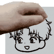 A hand gently 'petpets' a drawing of Bj Alex and Chanwoo, creating a cute and affectionate animated sticker.