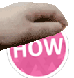 A simple cartoon sticker showing a hand holding a pink circle with the word 'HOW' written on it.