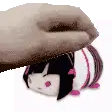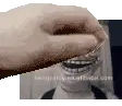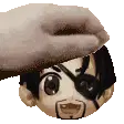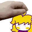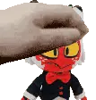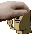 a pixel art of a man in a suit and tie holding a piece of paper over his head