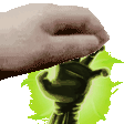 A pixel art hand gently 'petting' a statue of a man, referencing the 'World Of Tanks Blitz' game, with a touch of 'Last gasp' humor.