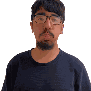 a man with glasses and a beard looks at the camera