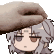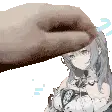 A hand gently pets Watanabe from Punishing Gray Raven, a beloved character from the PGR game.