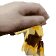 An animated Phighting Boombox sticker featuring a hand holding a piece of chocolate with a bite taken out of it.