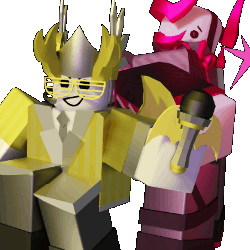 Valkspace and Subspace Phighting characters, one holding a microphone, perform together with vibrant energy and sparkling effects.