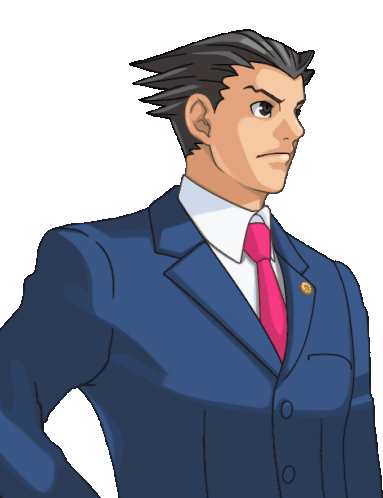 Phoenix Wright from Ace Attorney animated, talking or shouting with an open mouth.
