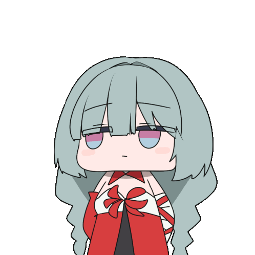 Phrolova Phralova, a cute chibi anime girl with long grey hair and a red dress, appears calm and unbothered.