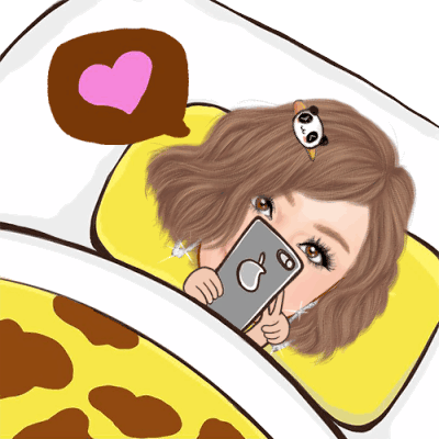 Phuong Mo in bed, holding a phone, with a 'Good night!' speech bubble, ready for sleep.