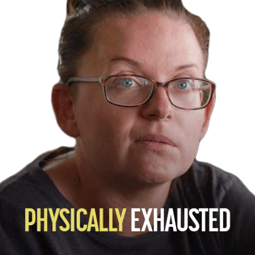Victoria Berezovich from Wheelie Peeps looks physically exhausted, expressing a feeling of being drained and worn out.