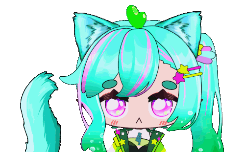 Piapiufo Vtube sticker featuring a cute anime girl with green hair, making a begging pout with puppy dog eyes.
