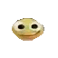 a close up of a smiley face with big eyes .