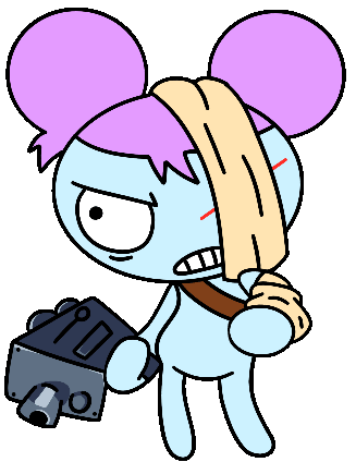 Pibby, from Learning with Pibby, appears battle-worn with a bandage, holding a gun-like device, ready for action.