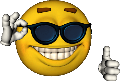 a cartoon smiley face wearing sunglasses and giving a thumbs up
