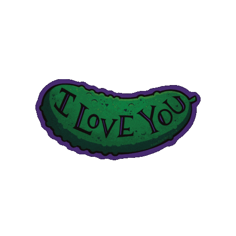 A vibrant green pickle sticker with 'I Love You' text, perfect for expressing affection with a touch of tomfoolery.