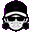 An animated pixel art sticker featuring Piestep Piestepyt, a stylized head with sunglasses and a hat, in black and magenta.