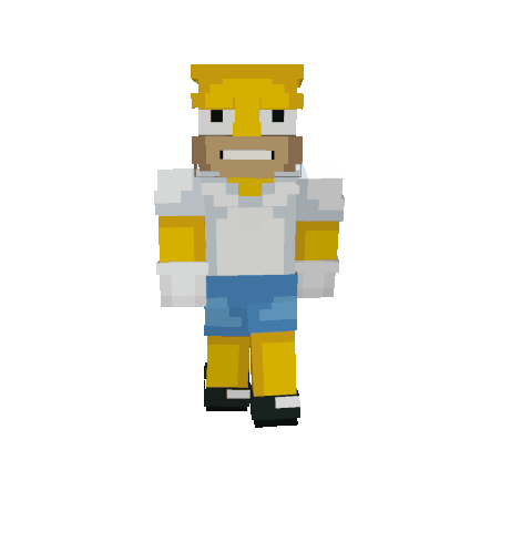 A pixelated Homer Simpson Minecraft skin by 3flamestudio, featuring Homer's iconic face that humorously transforms into a yellow box.