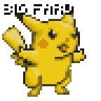 Pikachu pixel art sticker with 'BIG FRIRIFI' text, depicting a humorous fart animation.