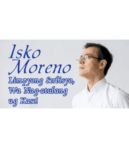 Isko Moreno, a Filipino politician, featured in a sticker with the slogan 'Limpyong Serbisyo, Wa Nag-atubang ug Kaso!'.