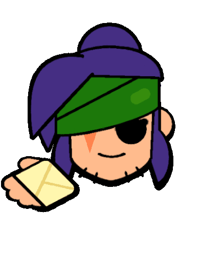 a cartoon character with purple hair and a green headband is holding a piece of paper
