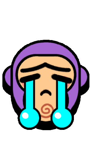 Animated sticker of a crying Buzz Lightyear character from Brawl Stars, with large blue tears streaming down its face.