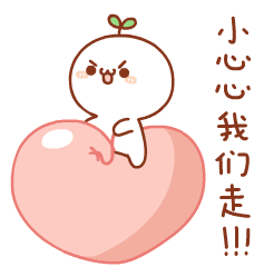A determined, cute white character with a sprout on its head pinches a large pink peach, ready to go.
