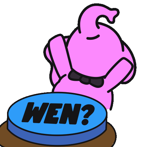 Patrick Pinkerton, the pink elephant, eagerly presses a 'wen' button, showing an impatient 'cant wait' mood.
